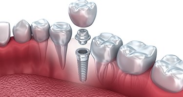 - Implant Post: A titanium implant post will mimic a root while anchoring your restoration to your jawbone.